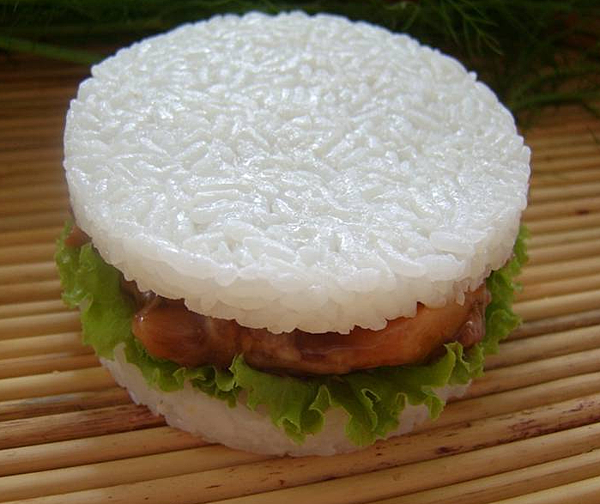 1987年日本的摩斯漢堡發明了世界首創的"米漢堡",第一代的米漢堡當中放的是日式的燒肉;從該商品問世以來,在美味與健康的考量下又做了多次的改良,而得到了愈來愈多年齡層的顧客歡迎。